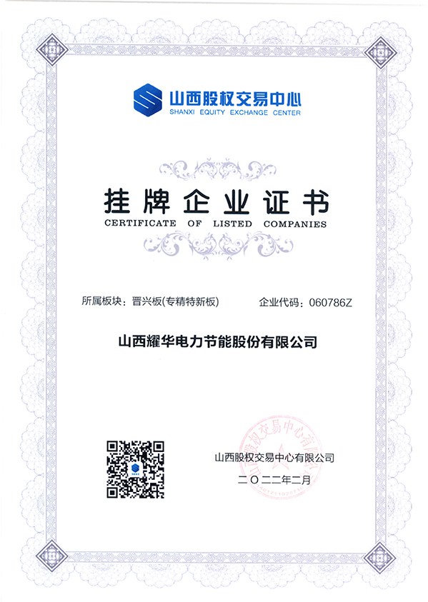 山西耀華電力節能股份有限公司是國內第一家提出谷期電集中儲能蓄能的高新技術企業,其主營業務:電力市場購售電交易運營、電力設施安裝檢測運維、 低谷電采暖設備的研發、生產、安裝、銷售及運行服務于一體。公司成立于1996年,落座于山西省太原市,現有股權代碼在晉興板上市的專精特新企業,中國建設科技自主創新優勢企業,山西省節能協會理事單位,擁有自主知識產權,獲得國家多項專利,參編了電采暖國家標準(JC/T60008-2021)和主編了山西省地方標準(DBJ04/T291-2012)。擁有國家發明專利11項,軟件著作權6項。其中“大數據遠程集中監控運維服務平臺”早在2019年就在河北、天津、山西等多個煤改電地區投入試用,節能效果非常顯著,運維方便快捷,用戶滿意。